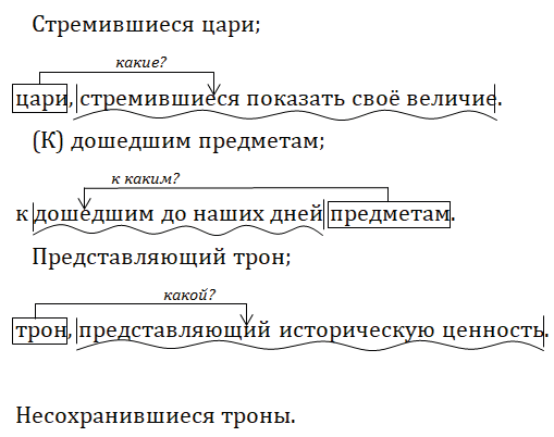 существительное" и причастные обороты с действительными причастиями (вместе с определяемыми ими словами);