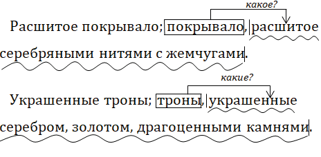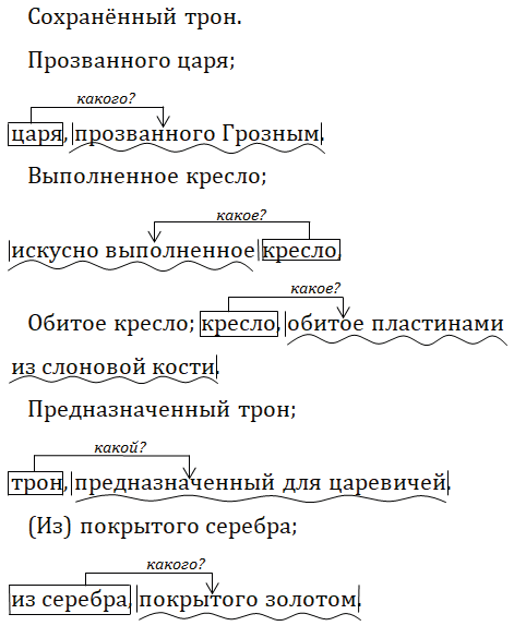 существительное" и причастные обороты со страдательными причастиями (вместе с определяемыми ими словами).