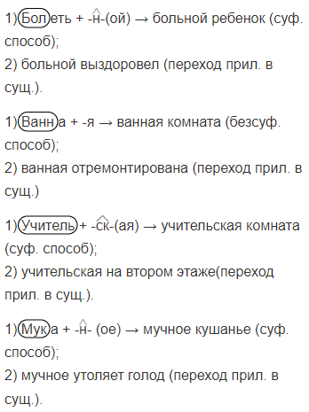 4) Мучное кушанье → мучное утоляет голод.