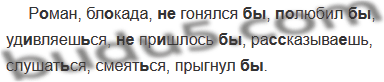 Р. .ман, бл..када, (не)гонялся(бы), (по)любил(бы), уд..в ляеш(?)ся, (не)пр..шлось(бы), ра(с, сс)казыва..шь, слушат(?)ся, смеят(?)ся, прыгнул(бы).