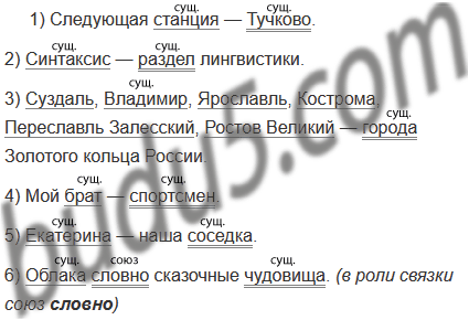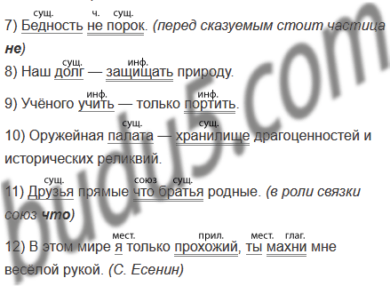 1) Следующая станция Тучково. 2) Синтаксис раздел лингвистики. 3) Суздаль Владимир Ярославль Кострома Пере-славль Залесский Ростов Великий города Золотого кольца России. 4) Мой брат спортсмен. 5) Екатерина наша соседка. 6) Облака словно сказочные чудовища. 7) Бедность не порок. 8) Наш долг защищать природу. 9) Учёного учить только портить. 10) Оружейная палата хранилище драгоценностей и исторических реликвий. 11) Друзья прямые что братья родные. 12) В этом мире я только прохожий, ты махни мне весёлой рукой. (С. Есенин)