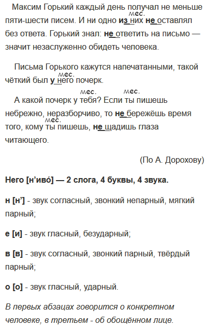 Максим Горький каждый день получал не меньше пяти-шести писем. И ни одно (из)них (не)оставлял без ответа. Горький знал: (не)ответить на письмо — значит незаслуженно обидеть человека.