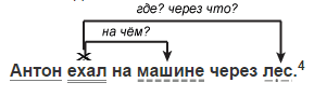 Антон ехал на машине через лес. (Повествовательное, невосклицательное, простое, распространённое).